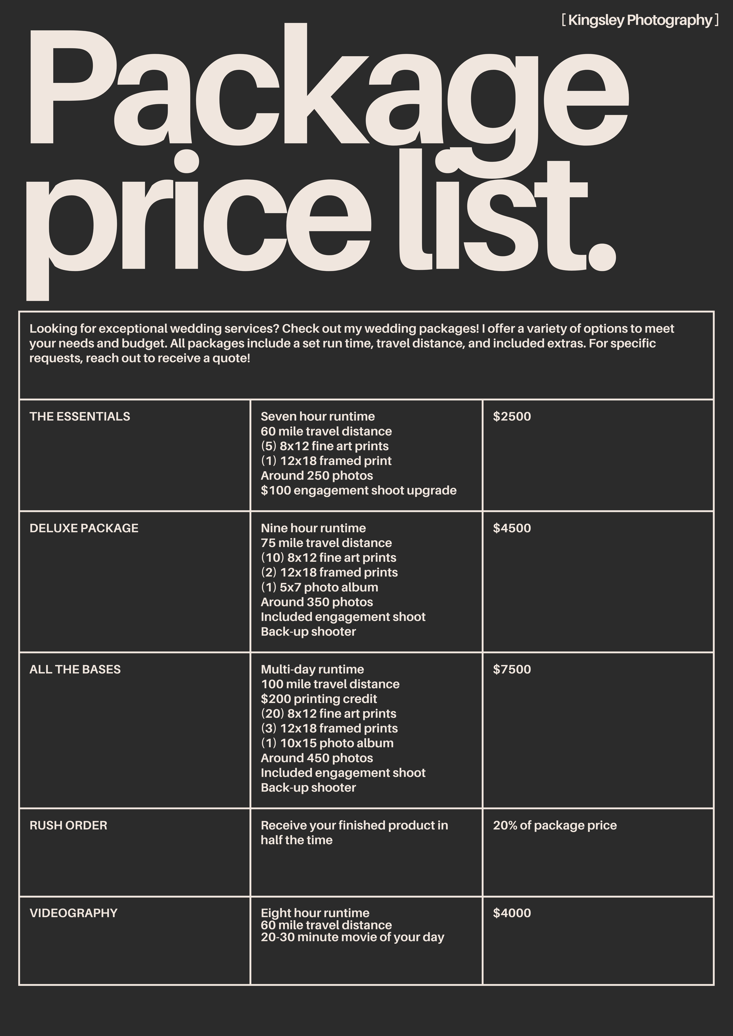 Having my entire life as experience, not just professional work, you have nothing to worry about in what’s captured. Photography is a passion more than it is a business for me. I’ve been taking photos of people and events for as long as I can remember.